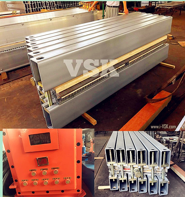 Hot vulcanizing press supplied by VSK, equiped with electrical pump and mamual pump, water cooling system, control carbinet, hydraulic hoses, power cords, rachet wrenches, as well as thermal baffles.
