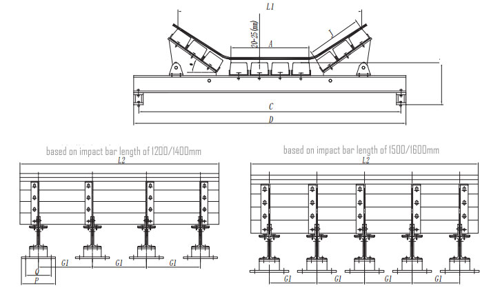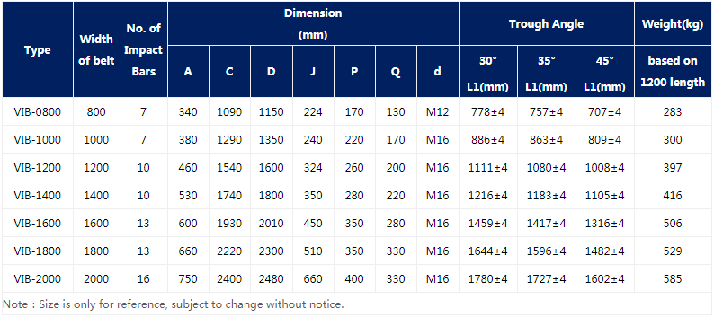 VSK impact bed suitable for material size can be max. 200mm, in weight of 100Kg max., height from the feeding point to conveyor belt surface can be max. 5meters .