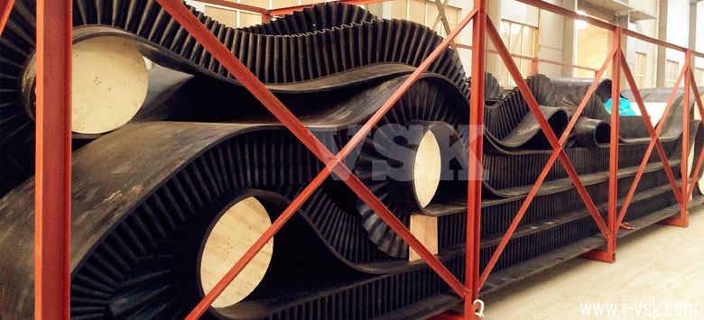 VSK corrugated sidewall conveyor belt available with steel cord or fabric reinforced based belt, different hieght of corrugated sidewalls and types of hot vulcanised rubber cleats, meet various of industrial applications, such as power plants, iron and steel metallurgy plants, mining, crushing, quarry, harbor ...